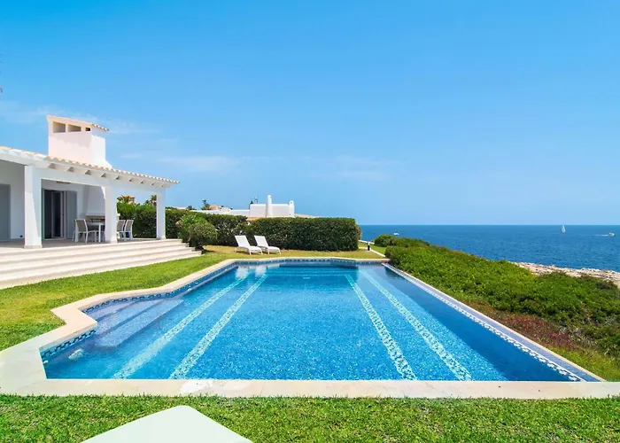 Guests can enjoy a seaside sea view from a terrace at the beachfront Kanani Cala Ferrera villa, 3.6 km from the Cala Mitjana Beach.